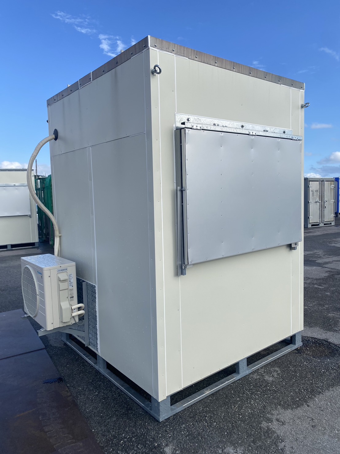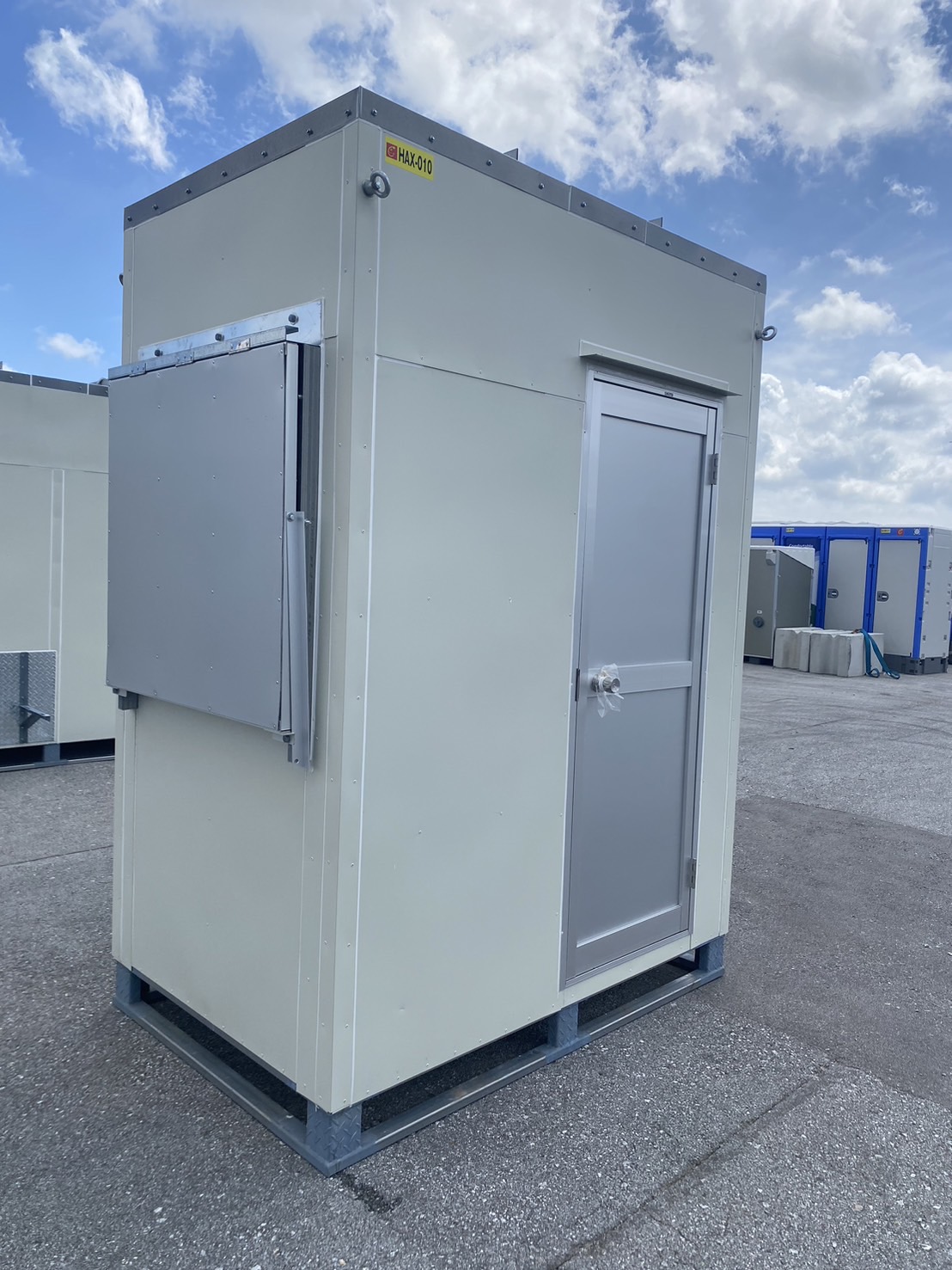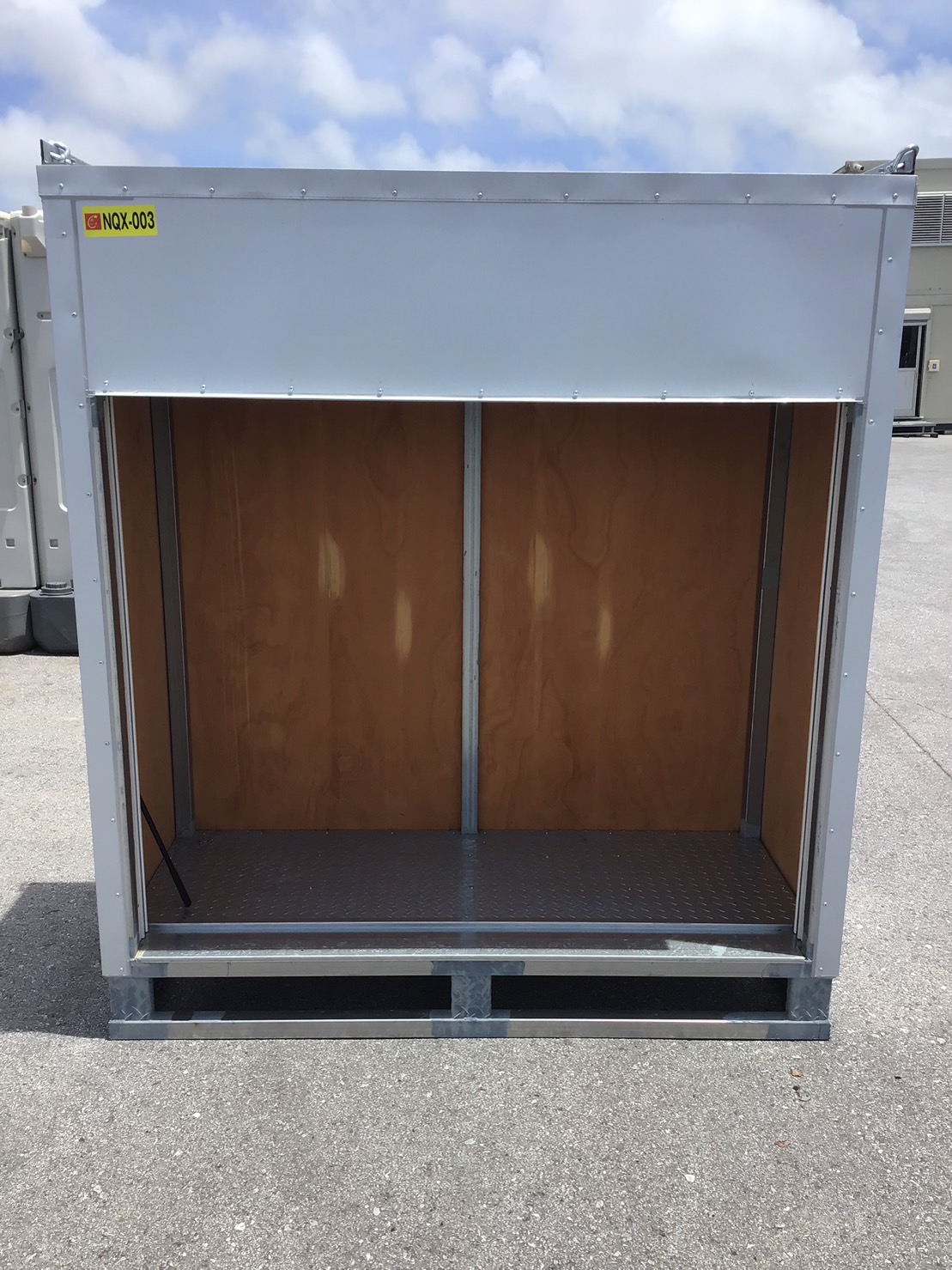 観音開きタイプの倉庫をご用意しています。クレーンやフォークリフトで簡単に設置が可能。