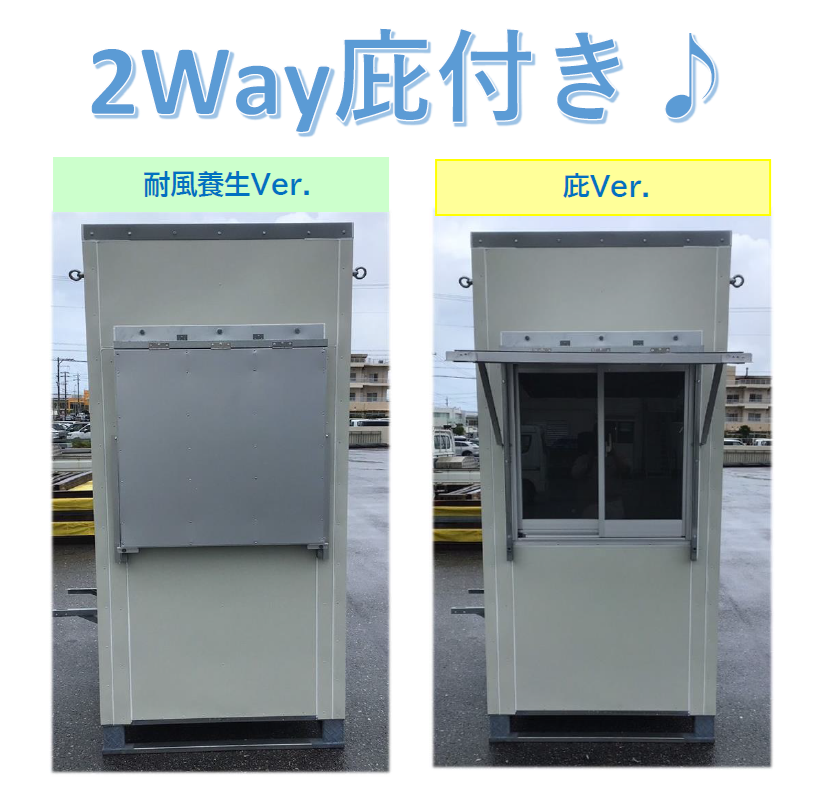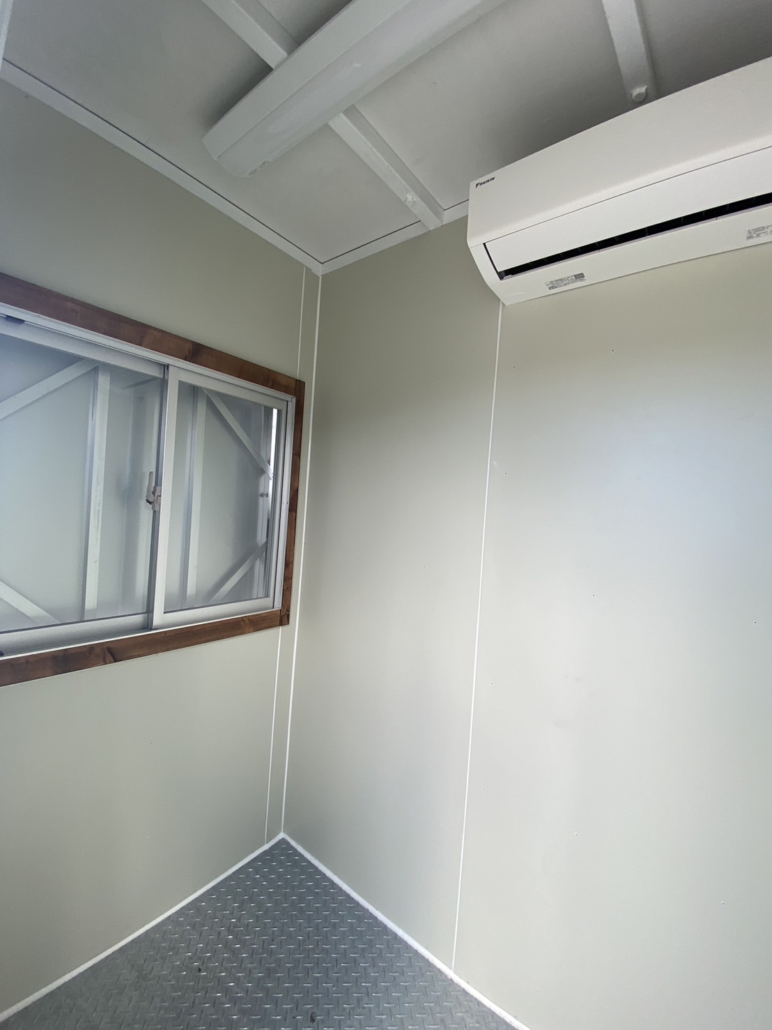 【外部使用材料】屋根:ZAM鋼板 外壁:カラートタン 【内部使用材料】天井:カラーベニヤ 壁:カラートタン 床:縞鋼板 ★2Way庇付き(普段は庇として台風時には台風養生として2Wayで使用できます♪) ★1tエアコン付き(暑い日に嬉しいエアコン付き♪) ドアタイプ(カギ付き) |