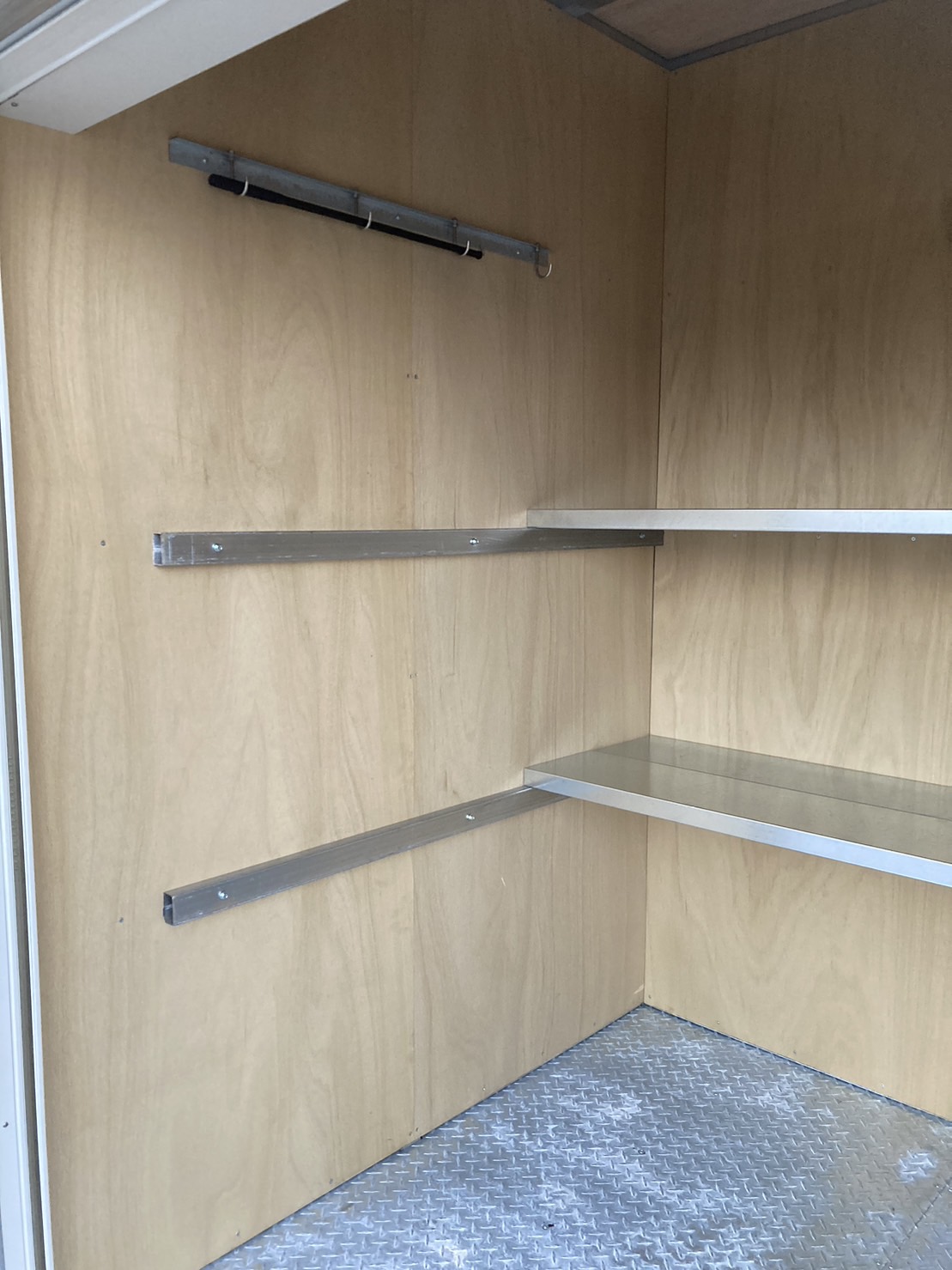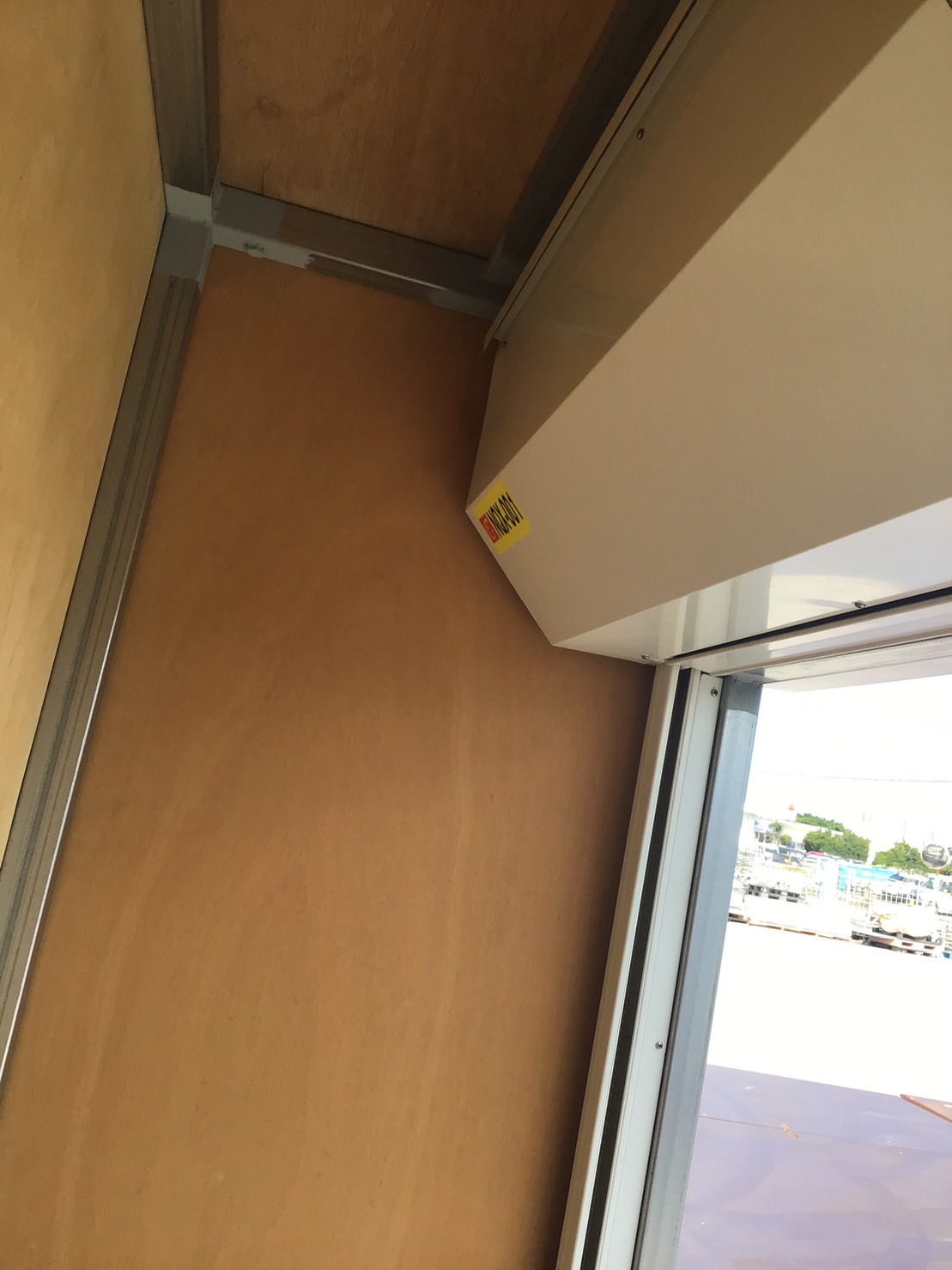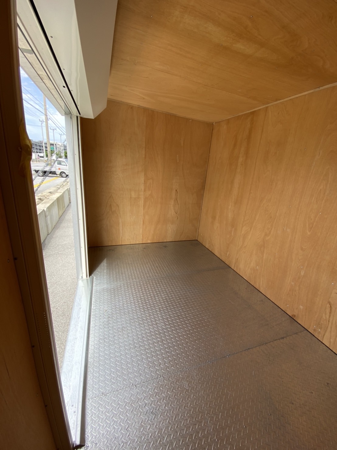シャッター棒・カギ1本付き。高さが前と後ろで違います。 床:縞鋼板張り |