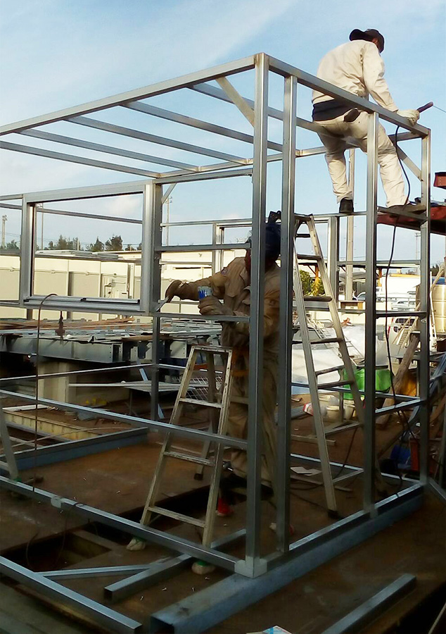 ○現場で使用する、ステップ、スロープ、手すり、固定金具などの、仮設物の受注製作 ○現場、ヤード、事務所などの、門扉やフェンス、ホイストなどの受注製作設置 ○格納倉庫の現場条件に合わせた受注製作 ○ガードマンボックスや、小型倉庫などの仮設、常設に応じた受注製作 ○大型貯水タンクを、現場の使用目的に応じて自由設計での受注製作